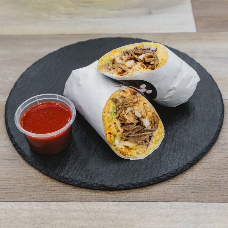 Time to get wrapped! Enjoy the goodness of crisp lettuce, tomato, onion, vibrant red cabbage, perfectly paired with your preferred doner meats, All wrapped in a soft flatbread, sealed with the delectable touch of our already added trio of signature sauces.